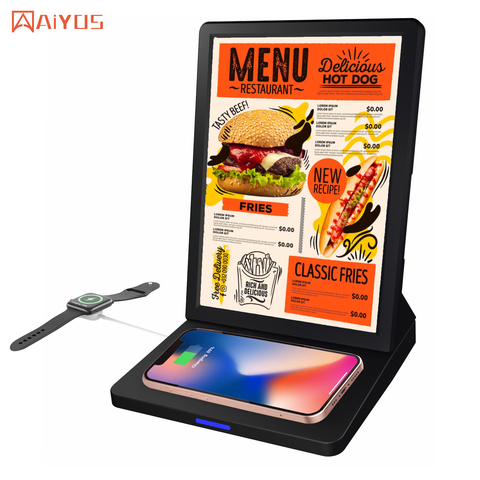 שולחן מסעדה דוכן 9.7 אינץ 'lcd מסך מגע דיגיטלי מסך פרסום תצוגת מסגרת תמונה דיגיטלית wifi עם מטען אלחוטי